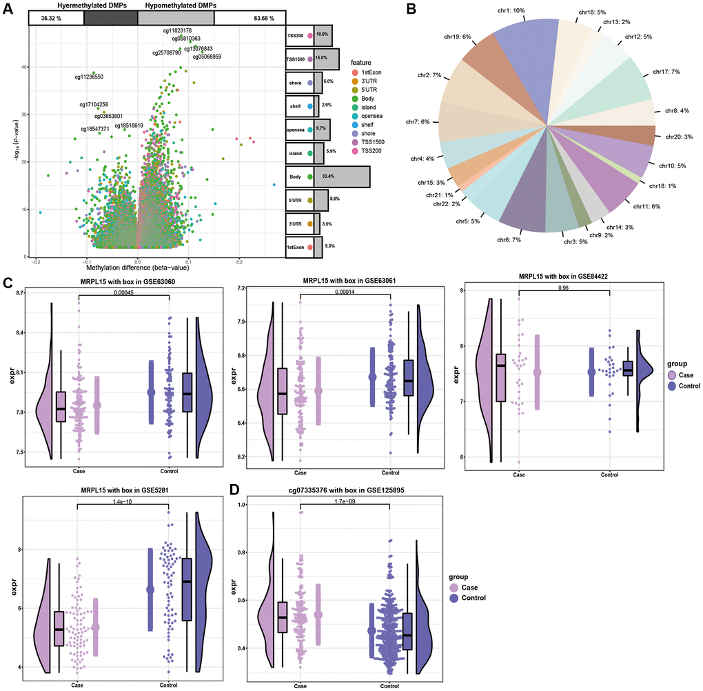 DNA methylation plays an important role in AD by further affected DNA function by activating or inhibiting gene transcription activity [16]. By analyzing the methylation level of genes of AD patients, we identified a series of methylation sites (Figure 5A). In addition, the methylation level of chromosomes at different positions was also different (Figure 5B). The expression of MRPL15 was verified by four datasets (Figure 5C). The level of methylation of MRPL15 was opposite to its level of expression, which means that MRPL15 may be a methylation factor regulated by methylation (Figure 5D).