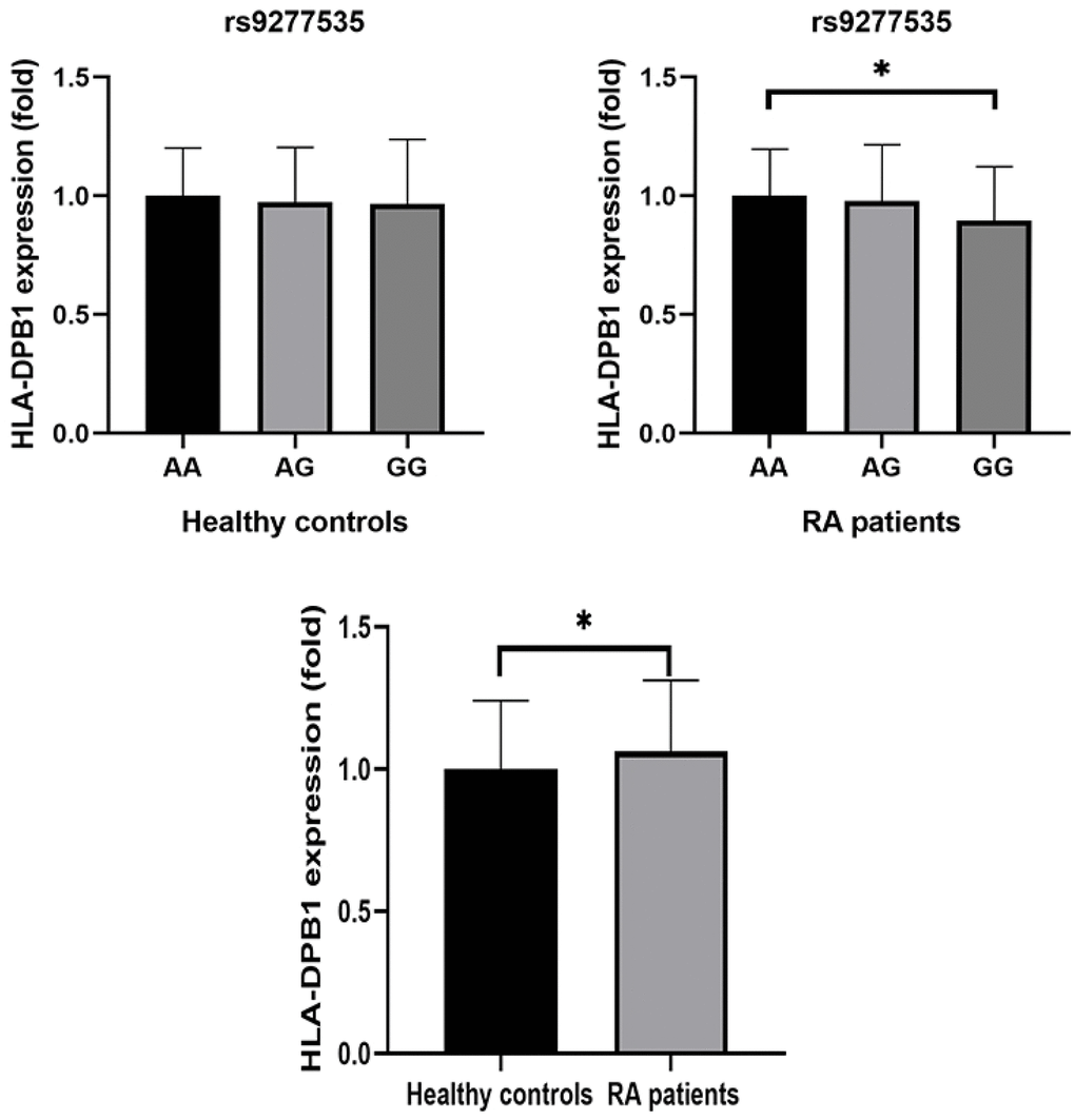 Associations between HLA-DPB1 rs9277535 genotype, plasma levels, and mRNA expression in RA