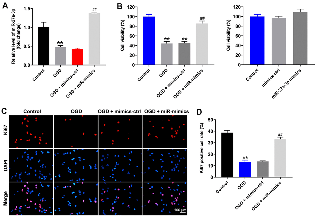 OGD-induced inhibition of HT22 cell growth is significantly reversed by miR-27a-3p mimics