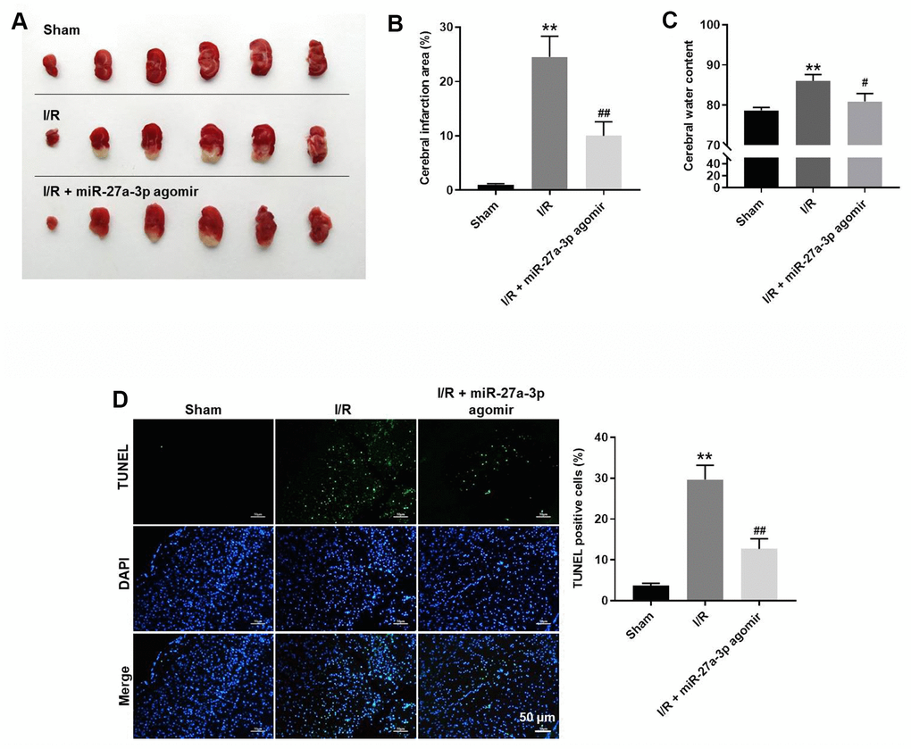 MiR-27a-3p agomir significantly attenuates the symptom of CI/R in vivo