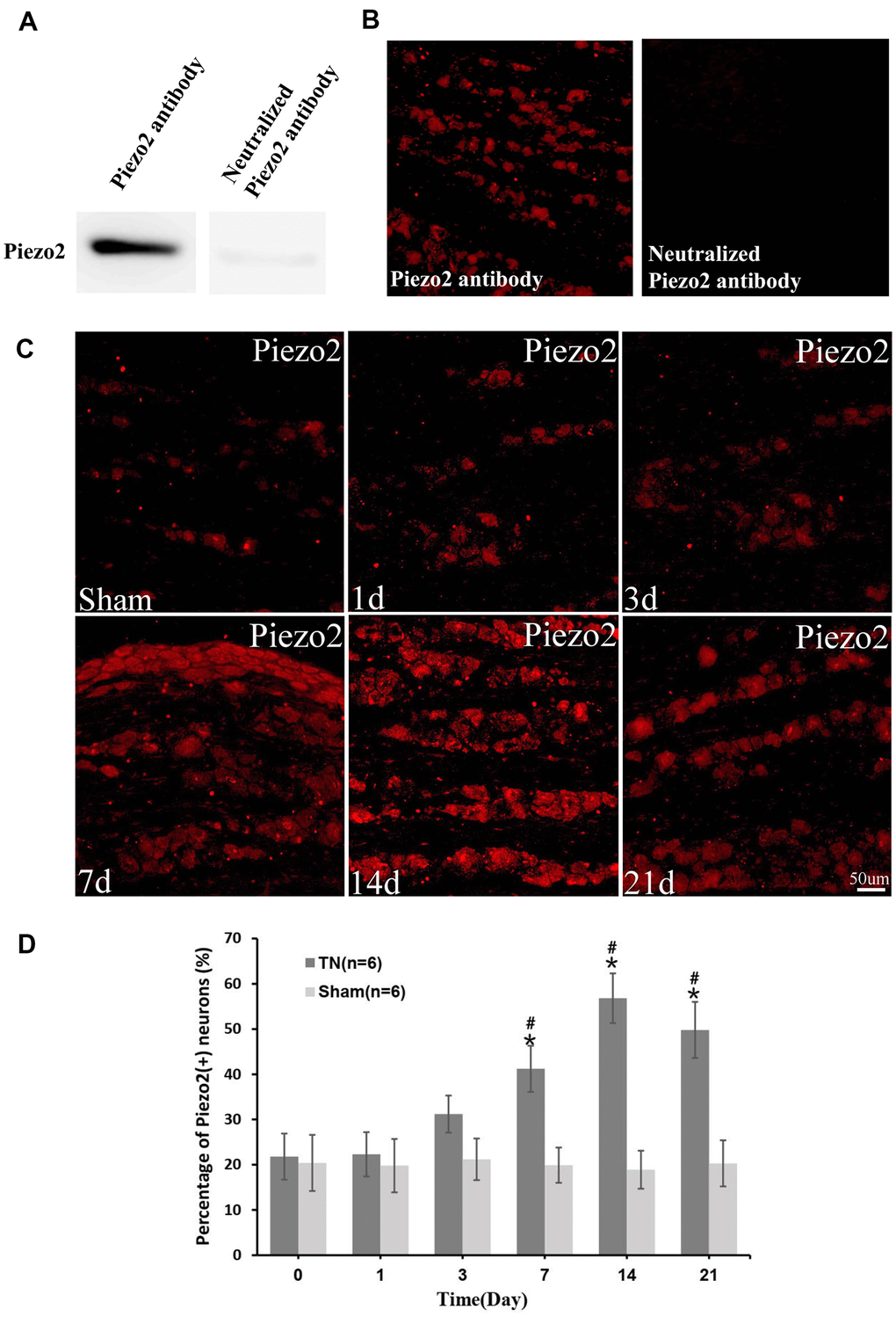 The expression of Piezo2 in TN model rats