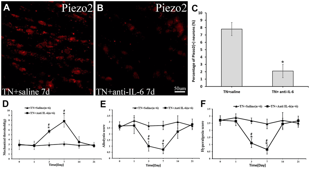 Hence, the present study aims to verify the hypothesis that the ectopic impulse of allodynia might be generated by Piezo2 mediated by IL-6 following some extent of nerve lesion as the trigeminal nerve has been compressed.