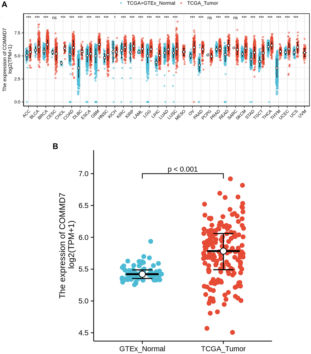 COMMD7 expression in pan-cancers and AML