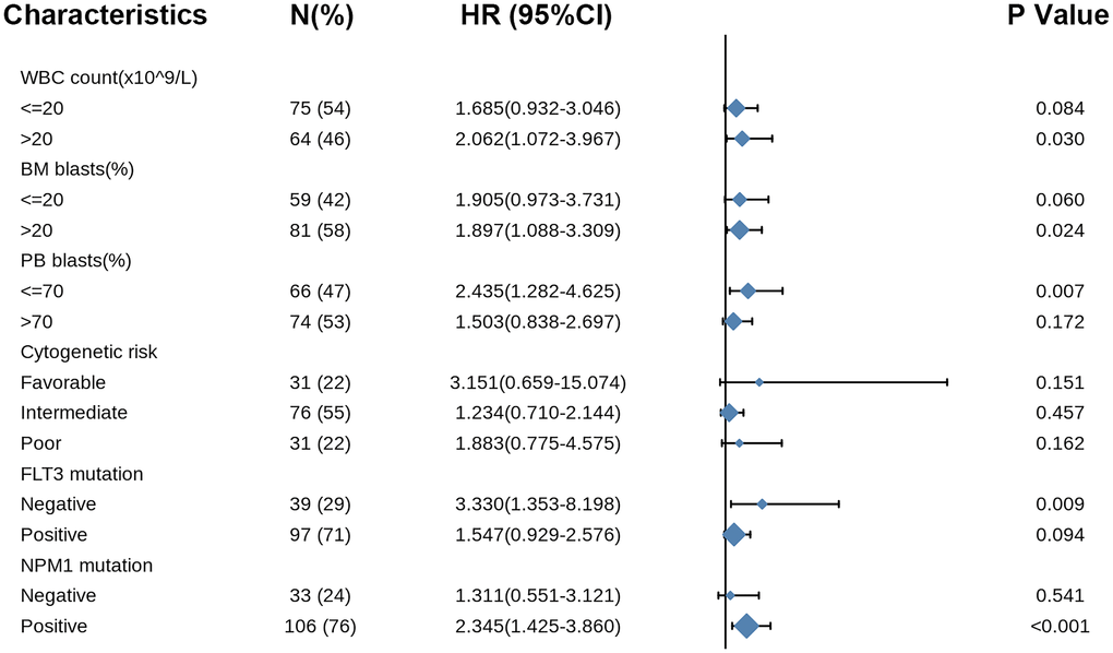 Table 3. Univariate and multivariate Cox’s regression analysis of factors associated with OS in AML.