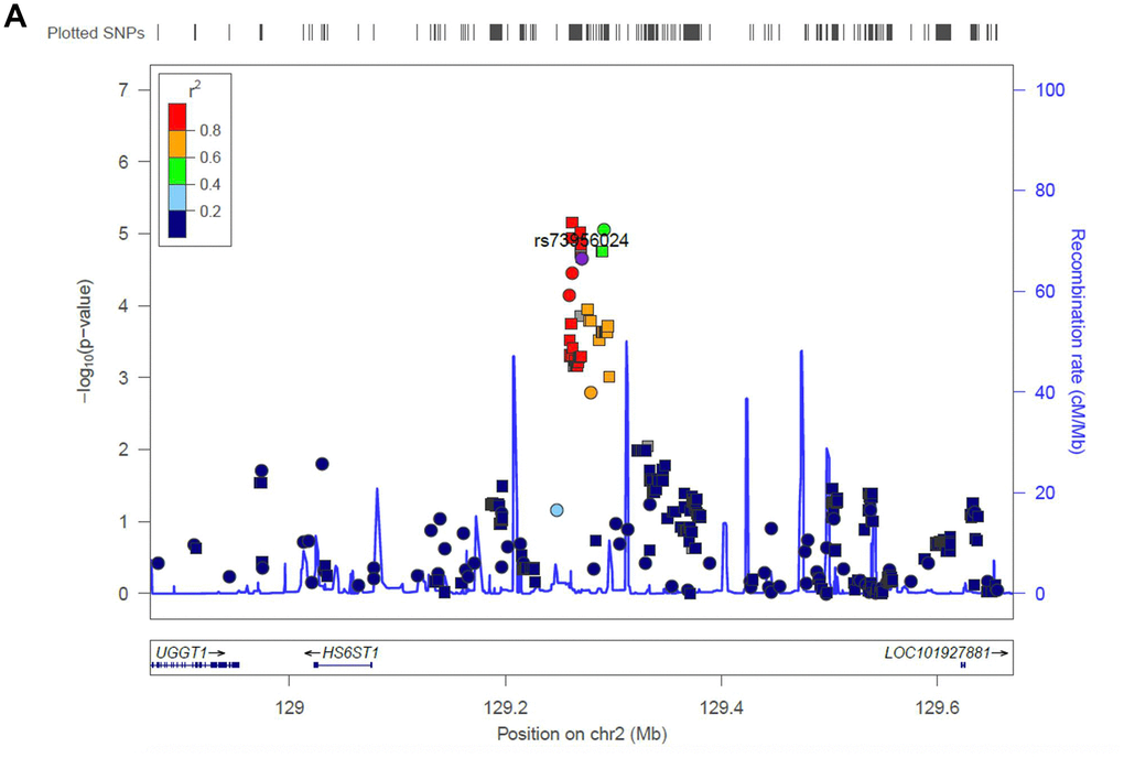 | rs73956024 | 2:128513332 | HS6ST1 | 0.13 | 0.81 (0.64-1.05) | 4.3×10-5 | 2.31 (1.55-3.45) | 0.96 | 1.01 (0.78-1.30) | 3.6×10-6 | 3.11 (1.93-5.04) | |||||||||||||||||||||||||||||||||||||||||||||||||||||||||||||||||||||||||||||||||||||||||