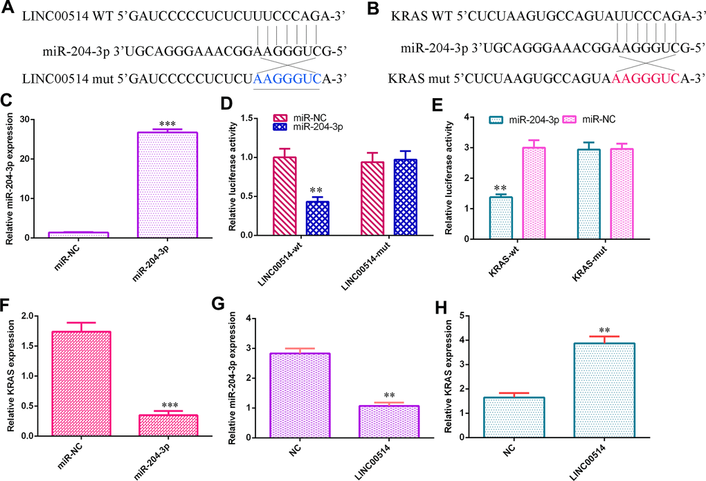 LINC00514 sponged miR-204-3p/KRAS expression in GC cells