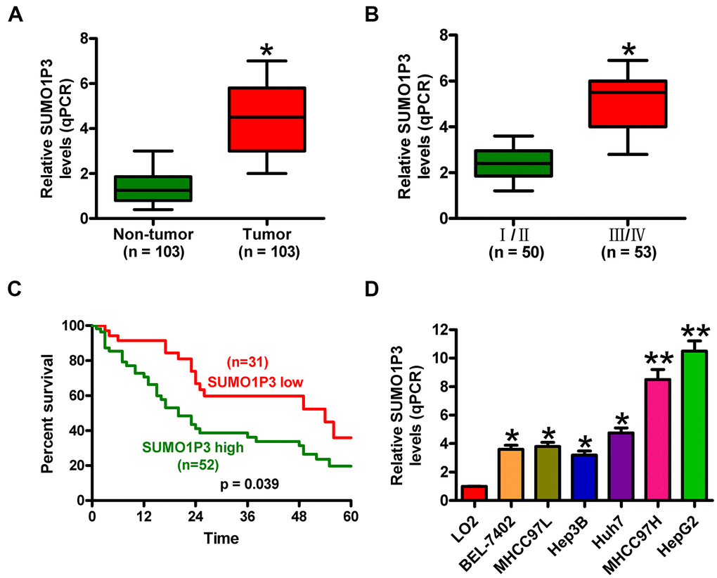 Increased SUMO1P3 expression in human HCC tissues and cell lines is associated with poor prognosis of HCC patients