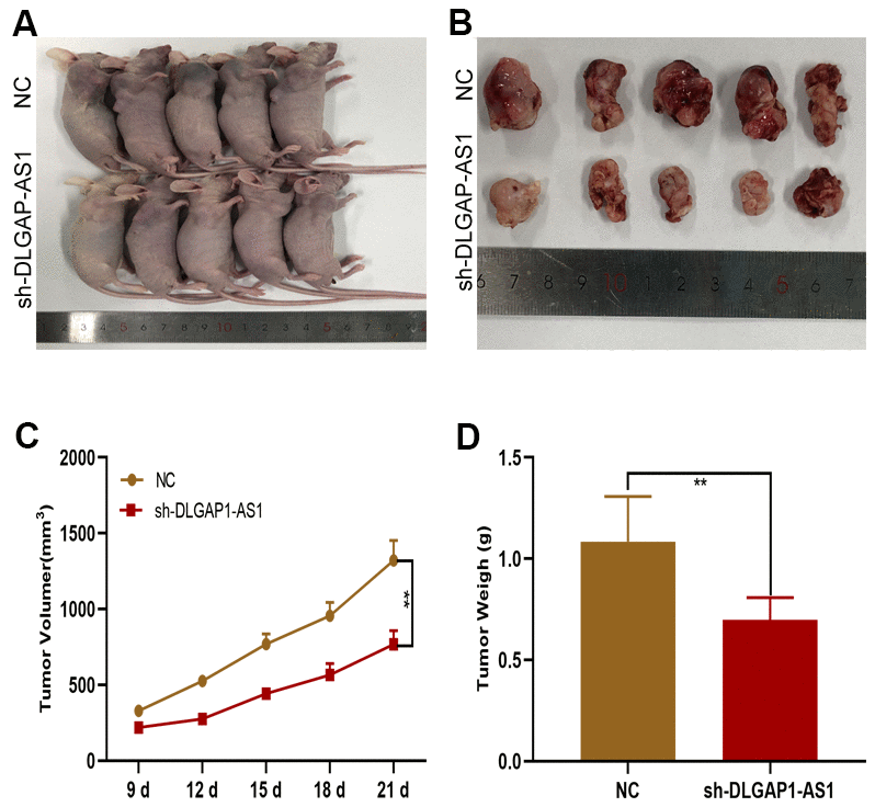 Silencing DLGAP1-AS1 inhibited tumorigenicity in vivo
