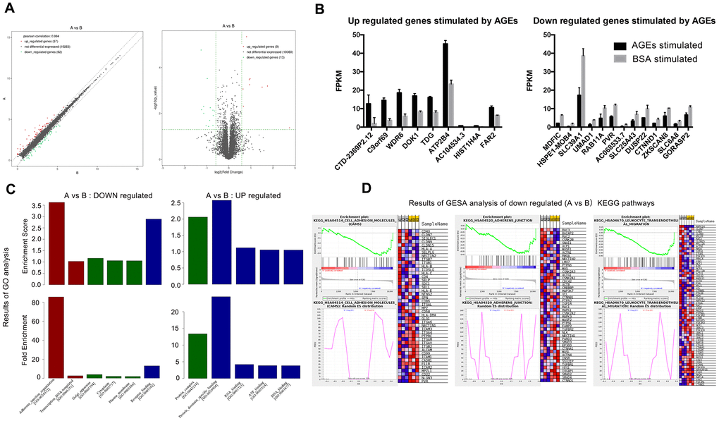 To identify the possible molecular mechanisms that are associated with the abnormal migration of neutrophils, we performed RNA-sequencing to detect changes in mRNA expression in neutrophils after they were stimulated with AGEs and BSA control for 24 h.