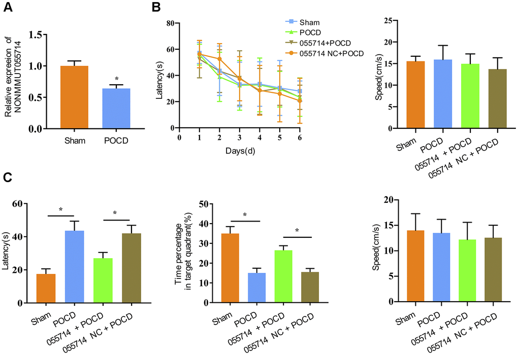NONMMUT055714 is downregulated in the mouse model of POCD and is associated with decreased performance on cognitive testing