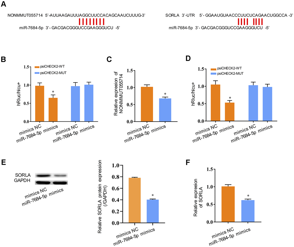 NONMMUT055714 binds miR-7684-5p to potentially influence SORLA expression