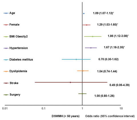 Table 2. Multivariate logistic regression analysis for the positive change of grade I or higher DSWMH in participants aged < 50 years, 50-59 years and ≥ 60 years.