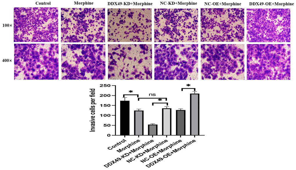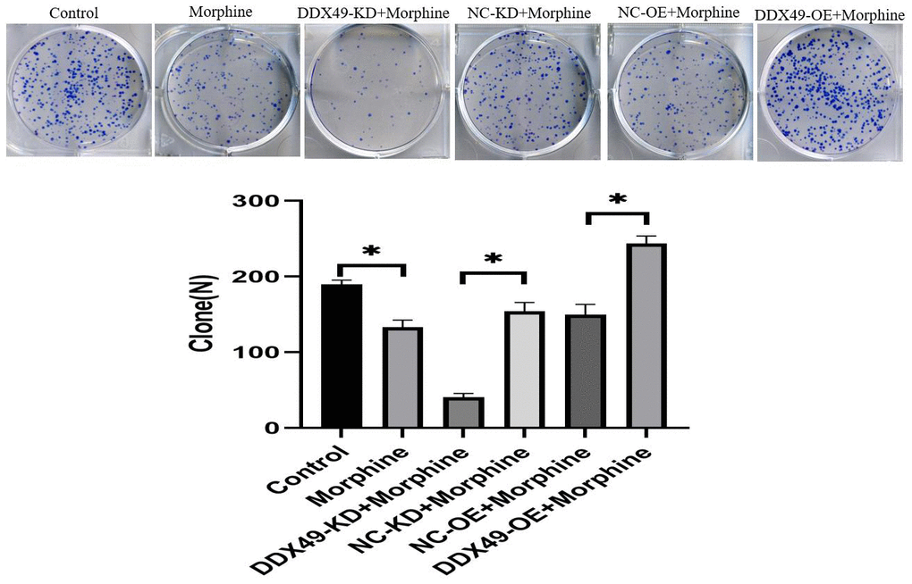 Overexpressing DDX49 reverses the anti-HCC effects of morphine in vitro, while knocking down DDX49 reinforces them