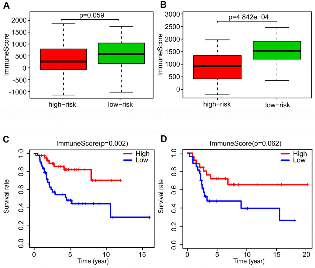 Firstly, we used the “limma” package in R software to normalize the matrix data of gene expression [44]. Then, immune score of each sample was computed by ESTIMATE algorithm according to the normalized gene expression [45].