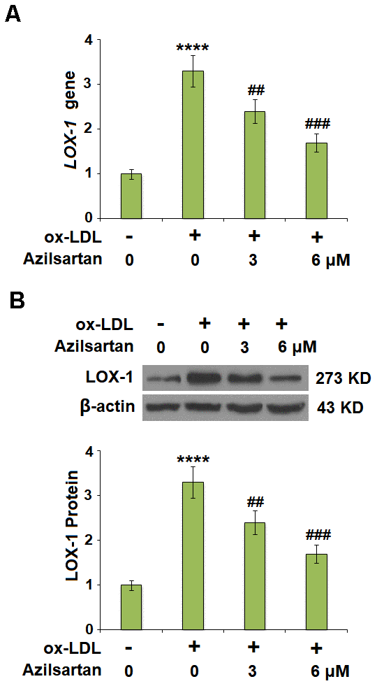 The expression of LOX-1 in the HUVECs induced by ox-LDL was downregulated by Azilsartan