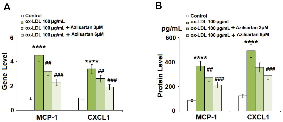 Azilsartan prevented the ox-LDL-induced expressions of MCP-1 and CXCL1 in HUVECs