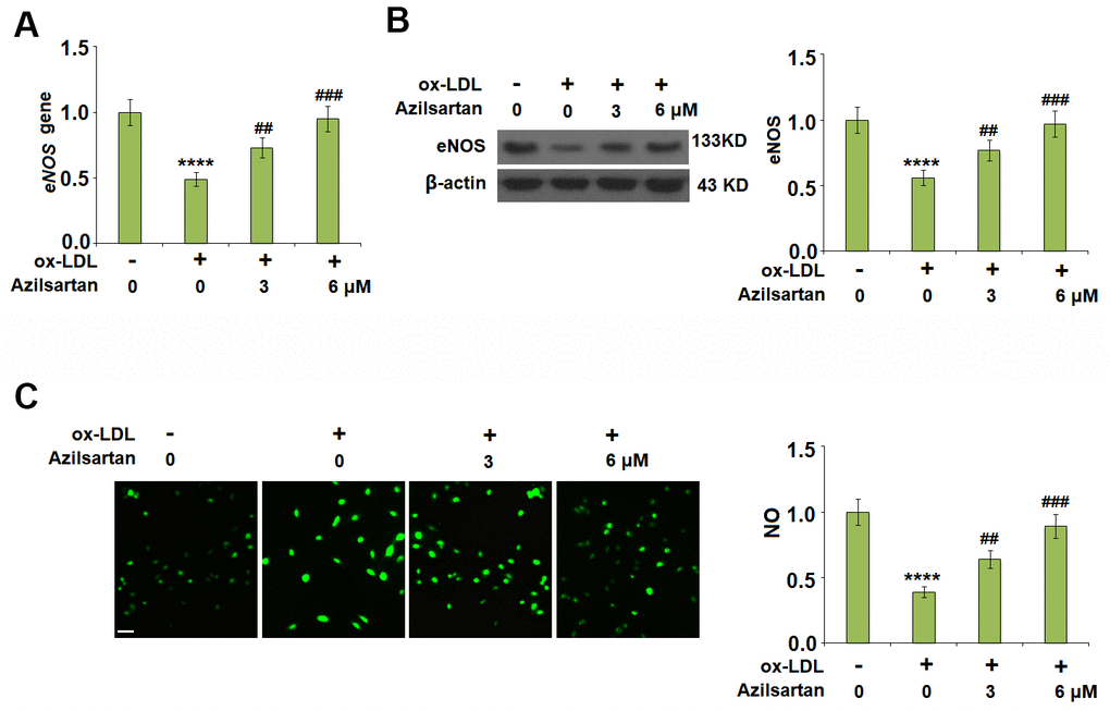 Azilsartan ameliorated the ox-LDL-induced reduction of eNOS and nitric oxide