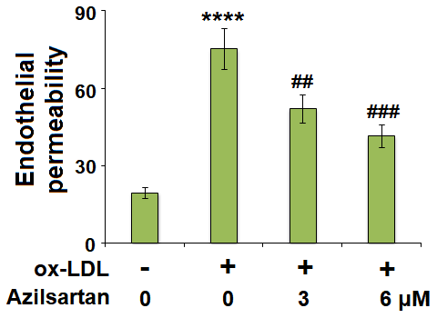 The enlarged endothelial monolayer permeability induced by ox-LDL was mitigated by Azilsartan