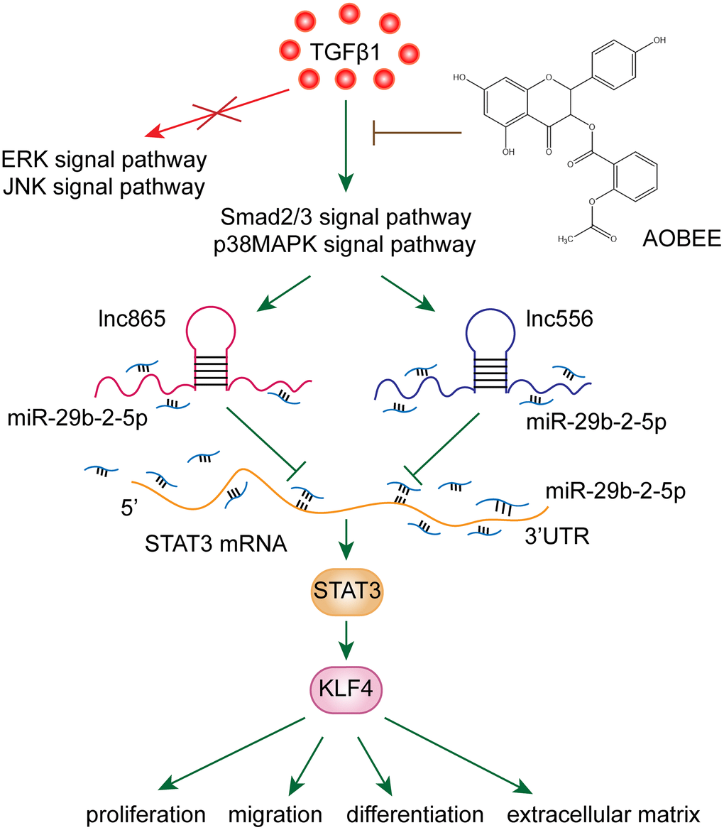 Regulatory up- and downstream signal pathways of lnc865/lnc556–miR-29b-2-5p–STAT3 axis under AOBEE treatment