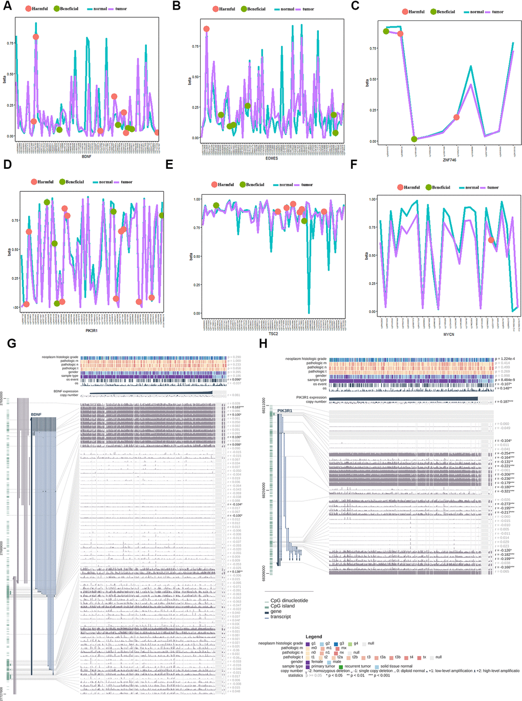 EOMES is an important transcriptional regulator of type I effector T cells, and plays key roles in the regulation of the tumor immune response. Ma et al.’s report showed that PD1hi CD8+ T cells were significantly enriched in tumor tissues compared to non-tumor liver tissues. Furthermore, PD1hi CD8+ T cells highly expressed transcription factors such as EOMES [43]. BDNF is a brain-derived neurotrophic factor that plays an important role in the growth, differentiation, and regeneration of various neurons. Lam et al.’s study suggested that the BDNF/TrkB system was crucial for tumor angiogenesis and growth, and may be a potential target for antiangiogenic therapy in HCC [44]. The current study found both beneficial and harmful methylation sites in BDNF; four methylation sites in BDNF could predict the OS of HCC patients. TFDP3 is a new transcription regulator of E2F, which can inhibit the binding and transcriptional activity of E2F with DNA. Jiao et al.’s study indicated that the E2F/TFDP3 complex was involved in cell cycle regulation [45].