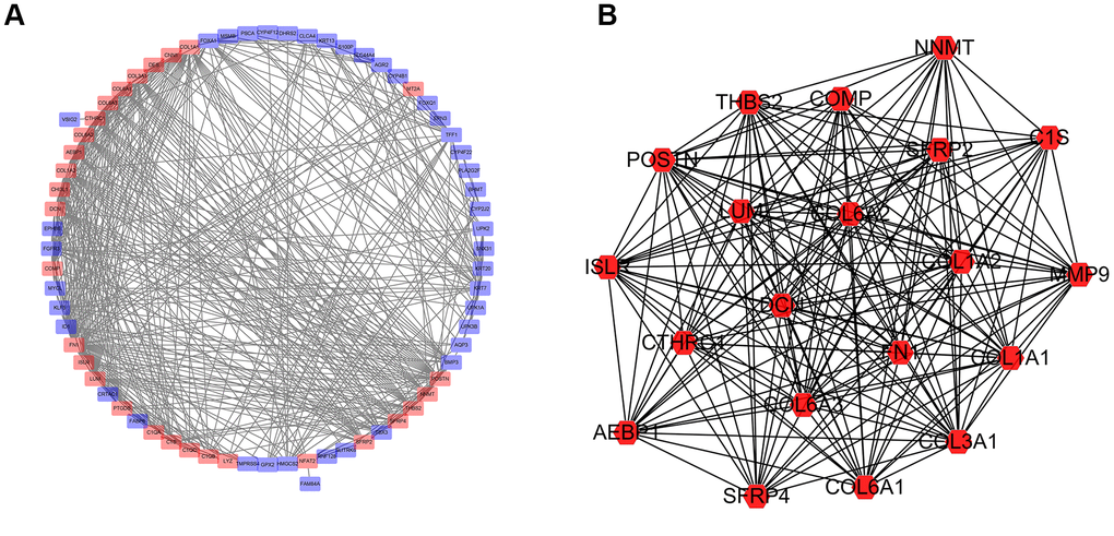 | 1 | 18.211 | 20 | 173 | MMP9, COL6A3, THBS2, CTHRC1, LUM, COL3A1, COL6A2, COL6A1, SFRP2, COMP, COL1A1, COL1A2, POSTN, NNMT, AEBP1, C1S, ISLR, DCN, SFRP4, FN1 |