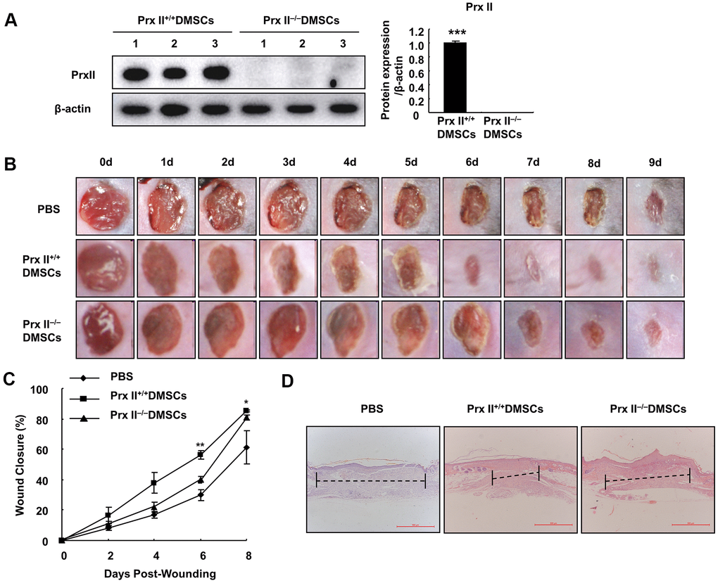 Deletion of Prx II inhibited DMSC-based treatment of skin wounds