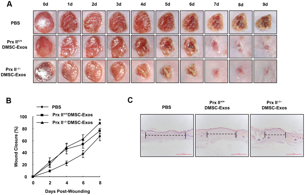 Prx II deletion promoted DMSC-Exo-based skin wound healing