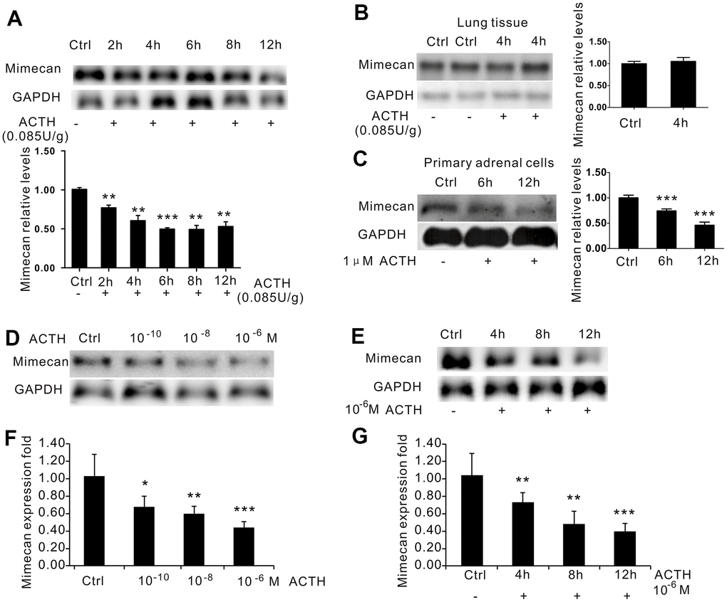 Mechanism of inhibited adrenal mimecan expression due to ACTH