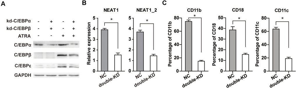 Double knockdown of C/EBPα and C/EBPβ reduces ATRA-induced upregulation of C/EBPε and dramatically impairs NEAT1 activation and APL cell differentiation