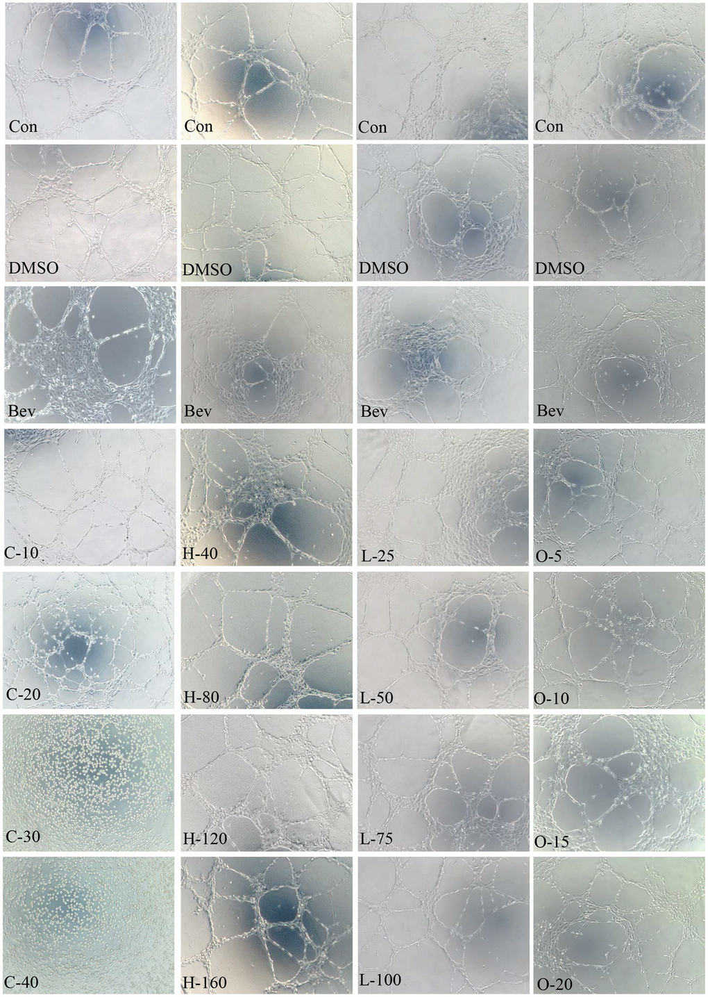 First, growth factor reduced basement membrane matrix (Corning, USA) was spread on the 15 μ-slide angiogenesis (ibidi, Germany), 10 uL per well, 50 uL of HRECs suspension was added to each well (about 2×104 cells per well), and cultured in a CO2 incubator at 37° C and 5% CO2 for 6 h, then observed under a microscope. The tube number was counted by image J software.