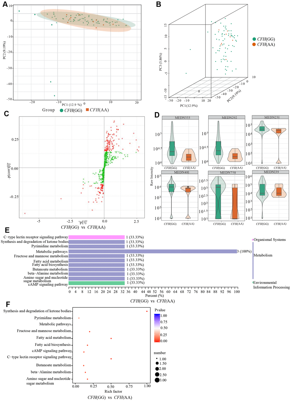 Metabolites are produced by the cumulative effect of the genome and its interaction with the environment. It is thought to be closely related to the phenotype of diseases, especially multifactorial diseases [25]. Metabolomics is a new omics approach after genomics and proteomics, which is mainly to conduct qualitative and quantitative analysis of all low molecular weight metabolites of a certain organism or cell in a specific physiological period to explore the relative relationship between metabolites and physiological and pathological changes. Metabolomics has made important achievements in the study of cardiovascular diseases [26], breast cancer [27, 28], Parkinson's disease [29] and diabetes [30]. Recently, researchers have also discovered the potential and versatility of metabolomics in the study of eye diseases [31–33]. For AMD, Lains et al. reported metabonomics research mainly based on white ethnicity and found that the glycerophospholipid pathway was significantly enriched [34–36].