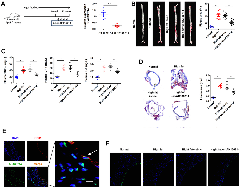 Silencing AK136714 inhibits atherosclerotic plaque formation