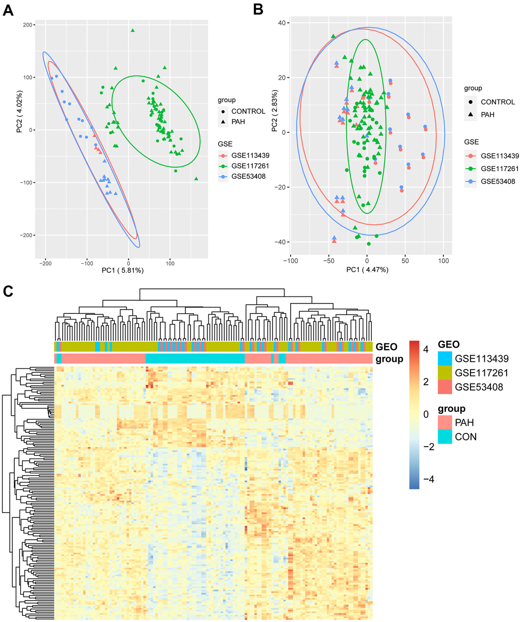 Recently, there has been a growing trend for PAH research to utilize high-throughput technologies to explore novel diagnostic or prognostic biomarkers and therapeutic targets. For example, Wang et al. reported that YWHAB was a diagnostic biomarker for idiopathic pulmonary arterial hypertension [3], and Zhu et al. uncovered that miR-140-5p and TNF-α might be therapeutic targets for PAH [7]. Recently, many bioinformatics tools were developed and FocusHeuristics is a competitive approach to explore disease-associated genes [8]. On the other hand, “Cytohubba”, a plug-in of Cytoscape, is a useful and user-friendly tool to obtain hub genes in biological network and has been widely applied [9]. However, the limited sample sizes make these studies inconsistent and can lead to unconvincing conclusions about biological functions. Therefore, it is much more critical to elucidate the underlying molecular mechanism of PAH, which will in turn provide possible routes on which potential treatments can be designed.