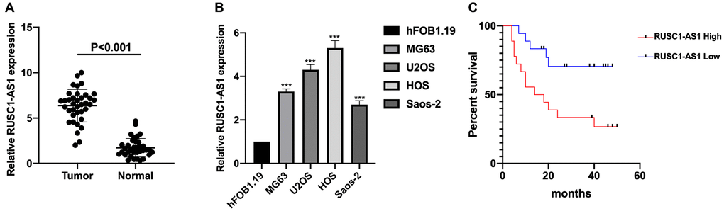 RUSC1-AS1 was highly expressed in osteosarcoma patient samples and cell lines