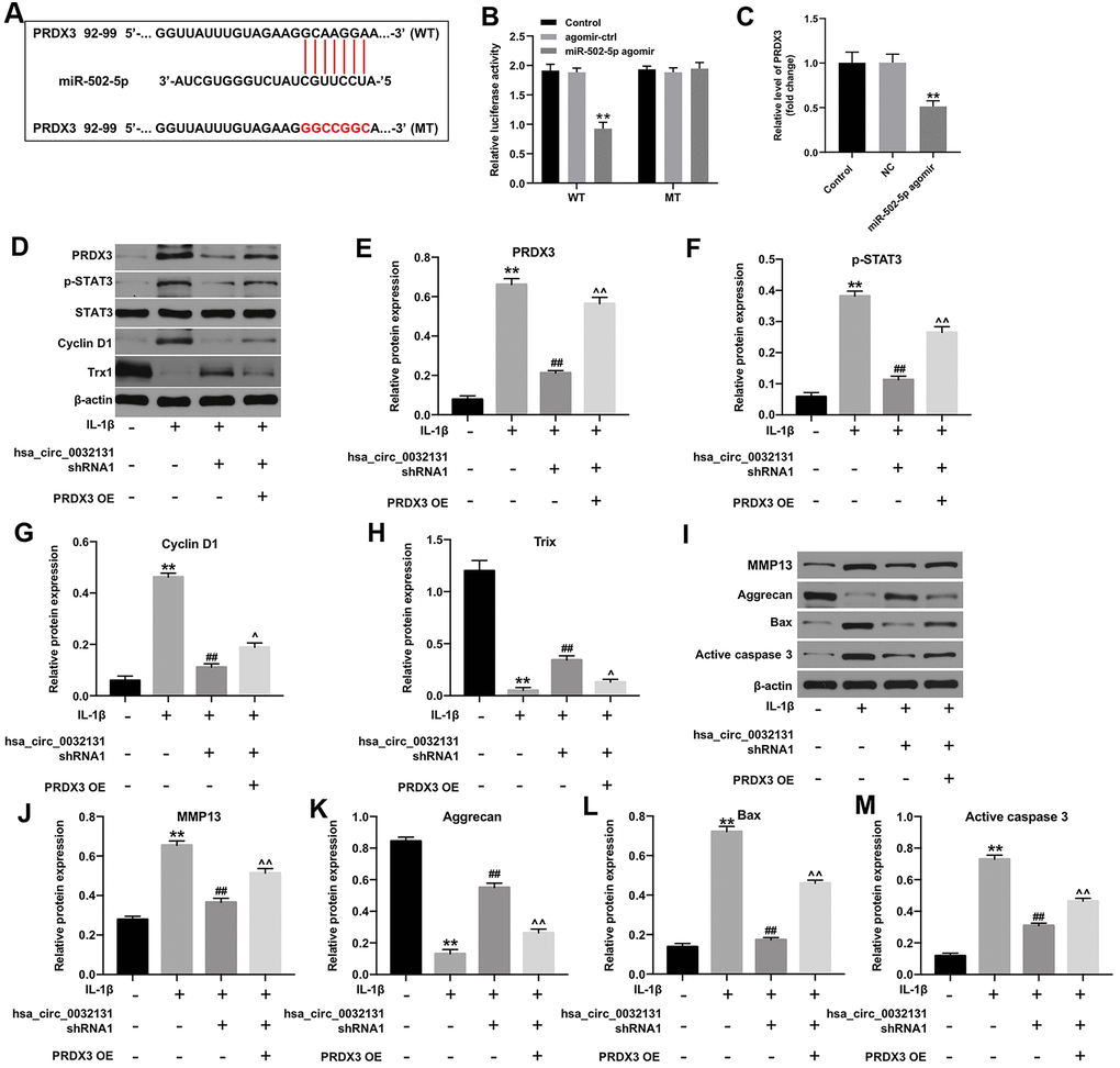Hsa_circ_0032131 shRNA1 inhibited OA progression via the miR-502-5p/PRDX3/Trx1/STAT3 axis