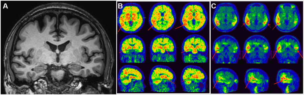 We performed 11C- PIB and 18F-T807 PET/CT to quantify beta-amyloid and tau deposition, respectively at the Department of Nuclear Medicine and PET of Hong Kong Sanatorium and Hospital, Hong Kong SAR. All subjects received 11C-PIB intravenously and were scanned at 35 min post injection. Within one week, they underwent 18F-T807 PET/CT at 85 min post IV injection. 11C-PIB and 18F-T807 uptake were quantified by the “global cortical to cerebellum Standard Uptake Value ratio (SUVR)”. The calculation of SUVR included 13 target regions of interest contoured automatically: frontal gyrus, gyrus rectus, lateral temporal lobe, medial temporal lobe, posterior cingulate gyrus, precuneus, putamen, thalamus, superior parietal lobe, occipital lobe, head of the caudate, cerebellar vermis and brainstem.
