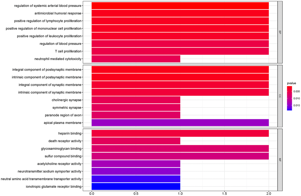 Gene ontology term and Kyoto encyclopedia of genes and genomes pathway analysis of the prognostic genes