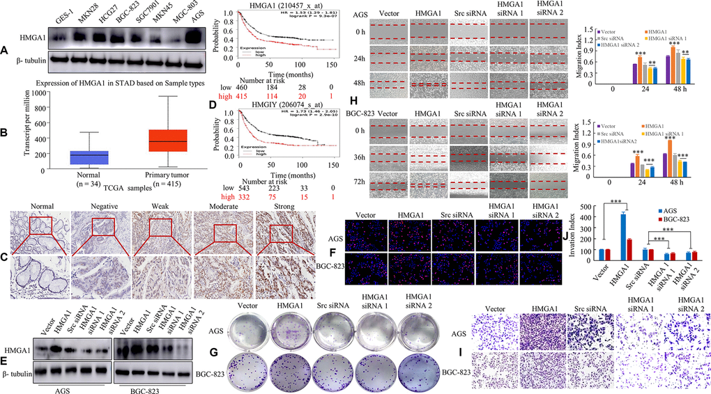 These results verified that HMGA1 expression is positively related with the malignant biological behavior of GC.
