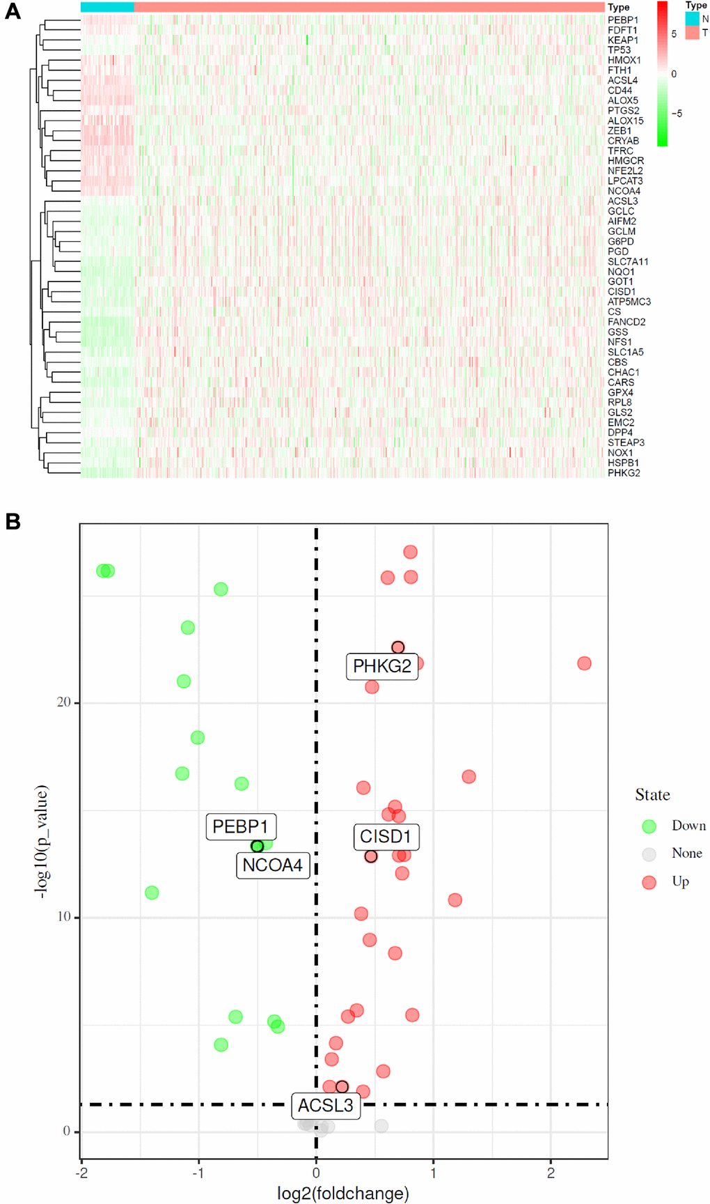 Total RNA was extracted from paired LUAD tumor and normal tissues using TRIzol Reagent (Invitrogen) by following the manufacturer’s instructions (Invitrogen) and 1 μg of total RNA was used to perform reverse transcription with Prime Script RT reagent (TOYOBO). Then qRT-PCR was performed with SYBR Green Dye (Applied Biosystems) in triplicate and GAPDH was used as an internal control. Relative quantitation was calculated using the 2-ΔΔCt method. The primers used in this study were as follows: CISD1 forward, 5′-AAGCTGTGTACTGCCGTTGT-3′ and reverse, 5′-CAGAGGGCCCACATTGTCTC-3′; NCOA4 forward, 5′-GAGGTGTAGTGATGCACGGAG-3′ and reverse, 5′-GACGGCTTATGCAACTGTGAA-3′; PHKG2 forward, 5′-AGGTCCATCATGCGGTCTCT-3' and reverse, 5′-AGTCGGATCTGCATATTGTCATC-3′; ACSL3 forward, 5′-ATGGAAAACCAACCTCATAGCAA-3′ and reverse, 5′-GCCATCCCAGTTATACCAGCAA-3′; PEBP1 forward, 5′-CTACACCTTGGTCCTGACAGA-3′ and reverse, 5′-GAGCCCACATAATCGGAGAGG-3′; GAPDH forward, 5′-CAGGGCTGCTTTTAACTCTGGTAA-3′ and reverse, 5′-GGGTGGAATCATATTGGAACATGT-3′.