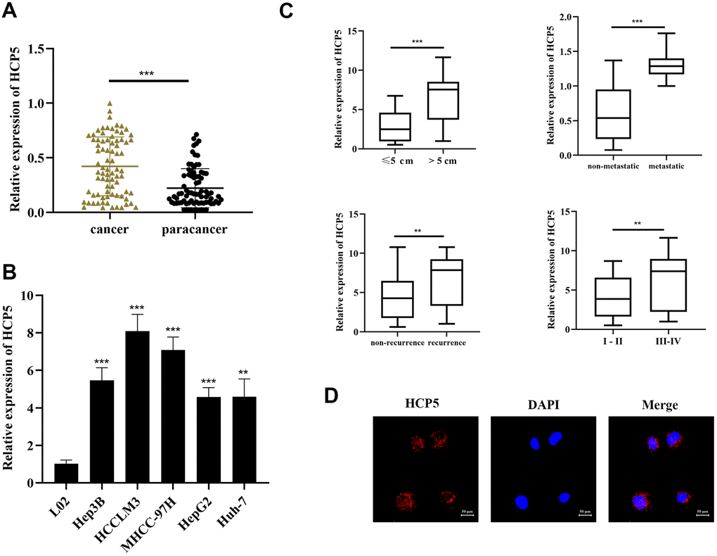 Human histocompatibility leukocyte antigen (HLA) complex P5 (HCP5) has been recognized as a key factor in cells of the immune system with potential regulatory effects in autoimmunity [13]. So far, many studies have proposed a pathological association between HCP5 and various cancers. It has been suggested that HCP5 could promote the progression of colorectal cancer by the miR-299-3p/PFN1/AKT axis, thereby exacerbating triple negative breast cancer by acting as a ceRNA to modulate BIRC3 and down-regulate miR-219a-5p. This facilitates the development of cervical cancer by regulating MACC1 via suppression of microRNA-15a and accelerate follicular thyroid carcinoma progression via miRNA sponges [14–17]. Additionally, knockdown of HCP5 could exert tumor-preventing effects by up-regulating miR-128-3p in anaplastic thyroid cancer [18]. Although HCP5 has been reported as a susceptibility locus for HCV-related HCC in meta-analyses by Christian et al. [19], the exact function of HCP5 in HCC remains to be elucidated.