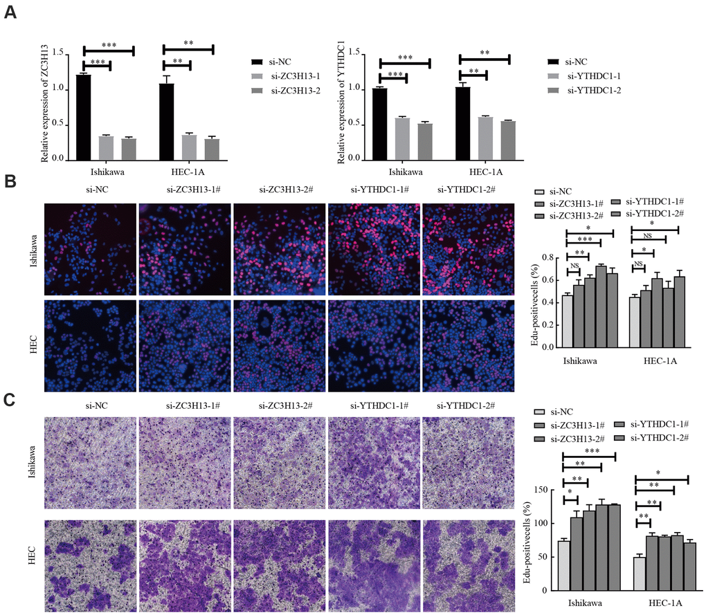 ZC3H13 and YTHDC1 knockdown promotes the proliferation and invasion of Ishikawa and HEC-1A cells