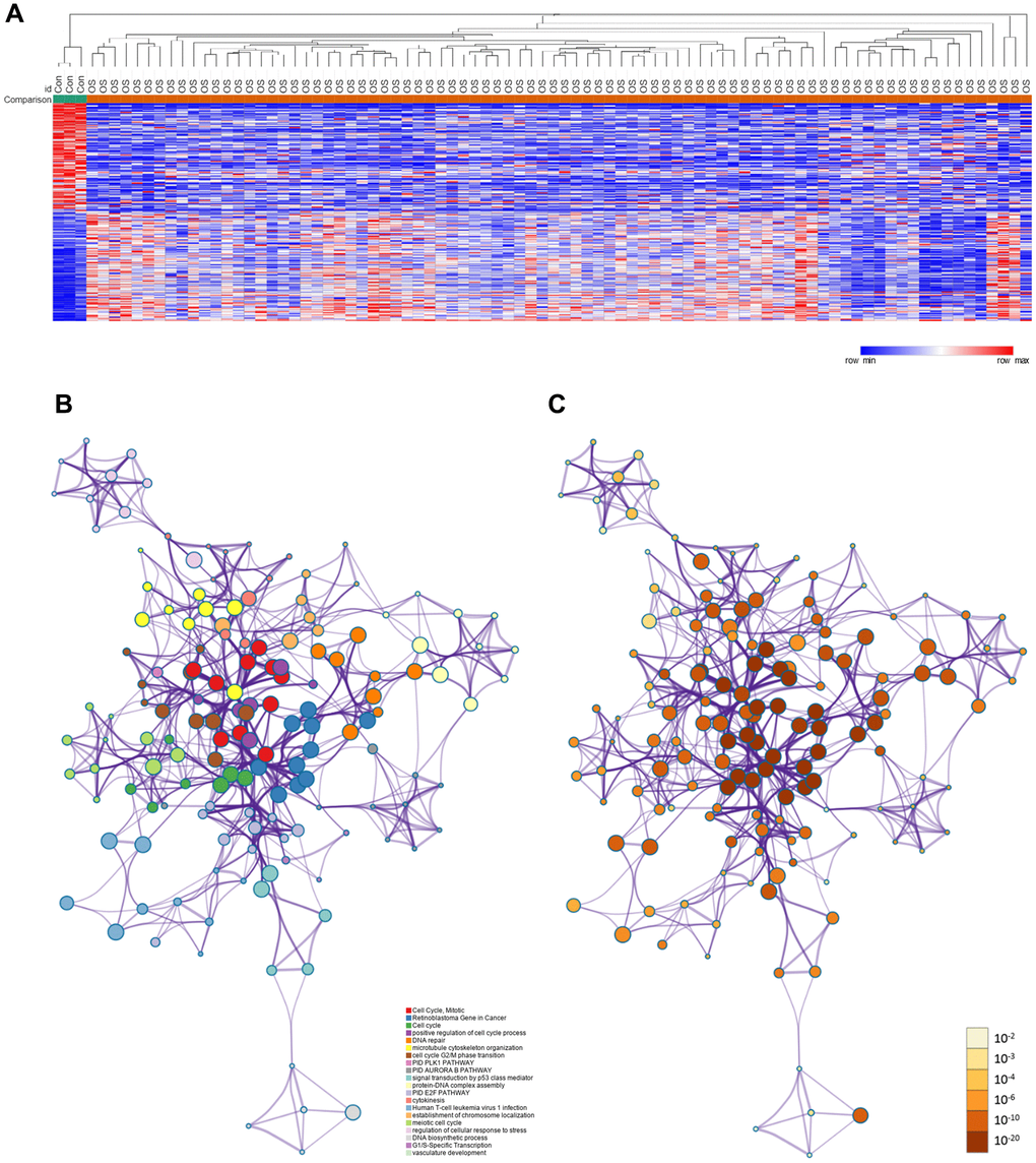 Next, we used Metascape to perform Gene Ontology (GO) and Kyoto Encyclopedia of Genes and Genomes (KEGG) pathway enrichment analyses on the DEGs. The DEGs were mainly enriched in the ‘cell cycle’, ‘positive regulation of cell cycle process’, ‘DNA repair’, ‘microtubule cytoskeleton organization’ and ‘cytokinesis’ (Supplementary Figure 1A).