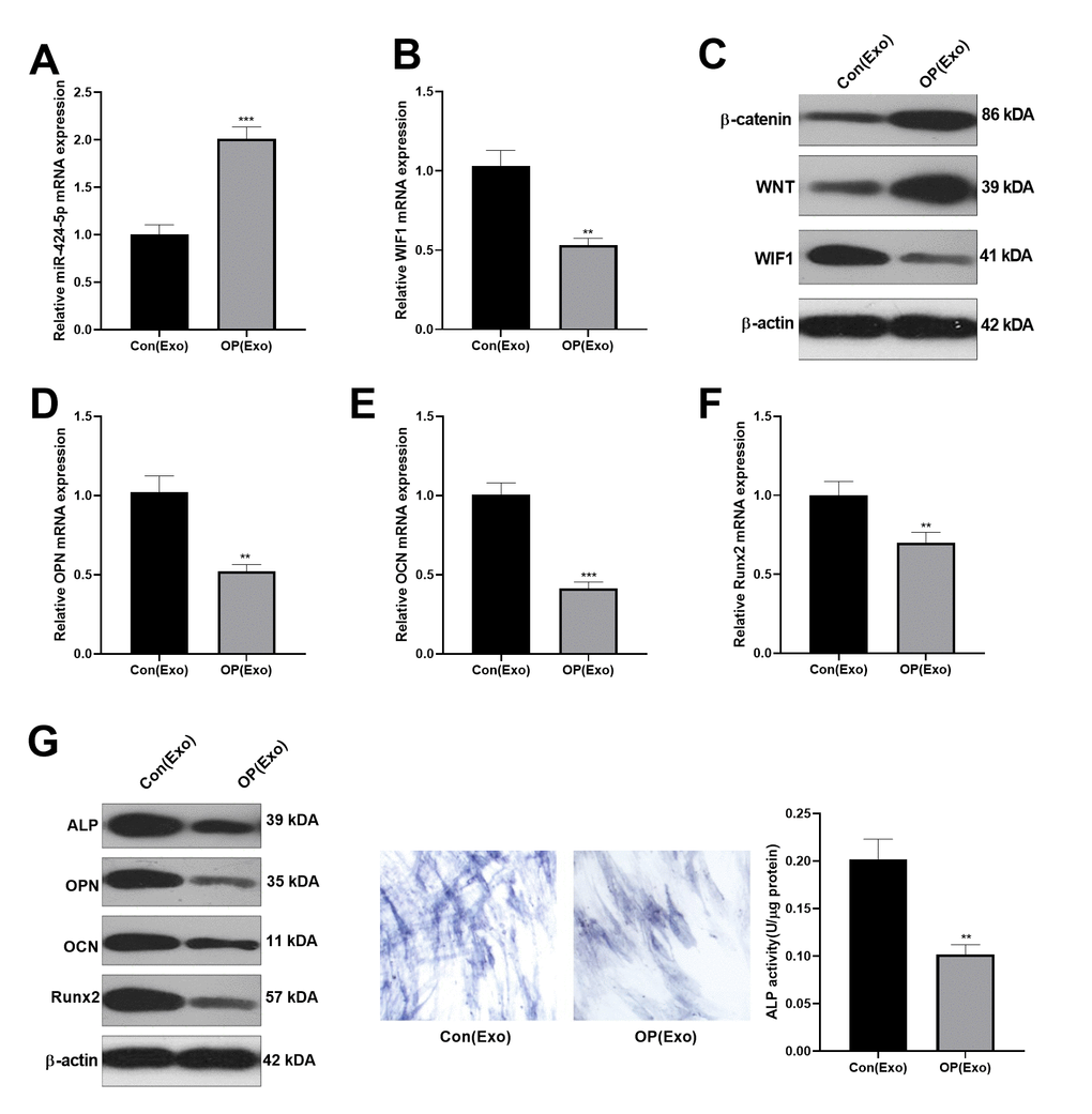 Here, the manuscript discovered miR-424-5p is overexpressed in BMSCs-derived exosomes, and miR-424-5p overexpression abates osteogenic differentiation, while the overexpression of WIF1 partially reverses the osteogenic inhibition of BMSCs-derived exosomes. Our findings suggested that intervention of miRNA in exosomes may be a new direction for the treatment of osteoporosis.
