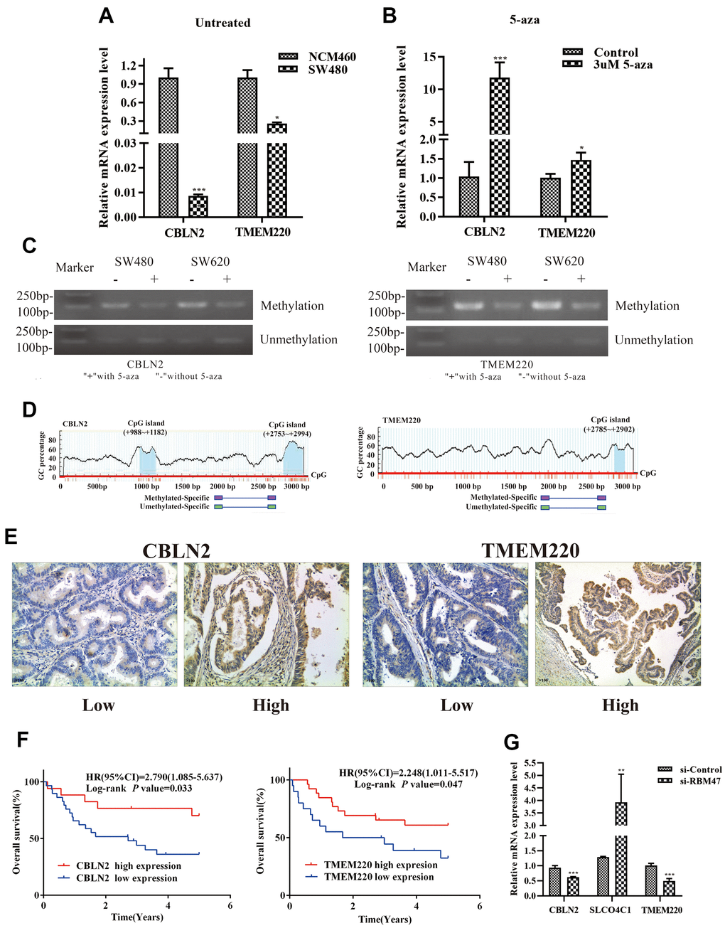 Validation of differential expression of CBLN2 and TMEM220 due to promoter methylation