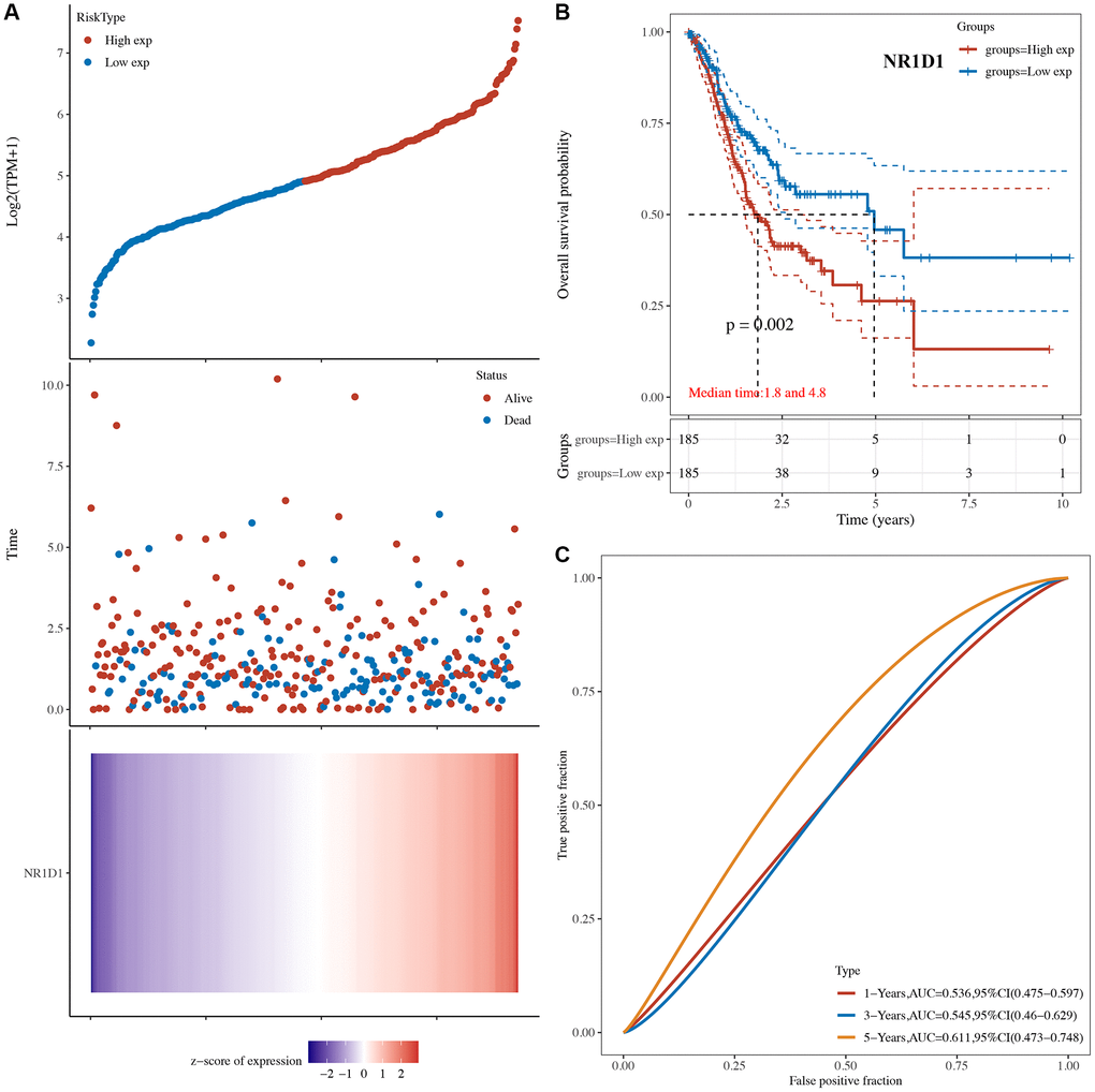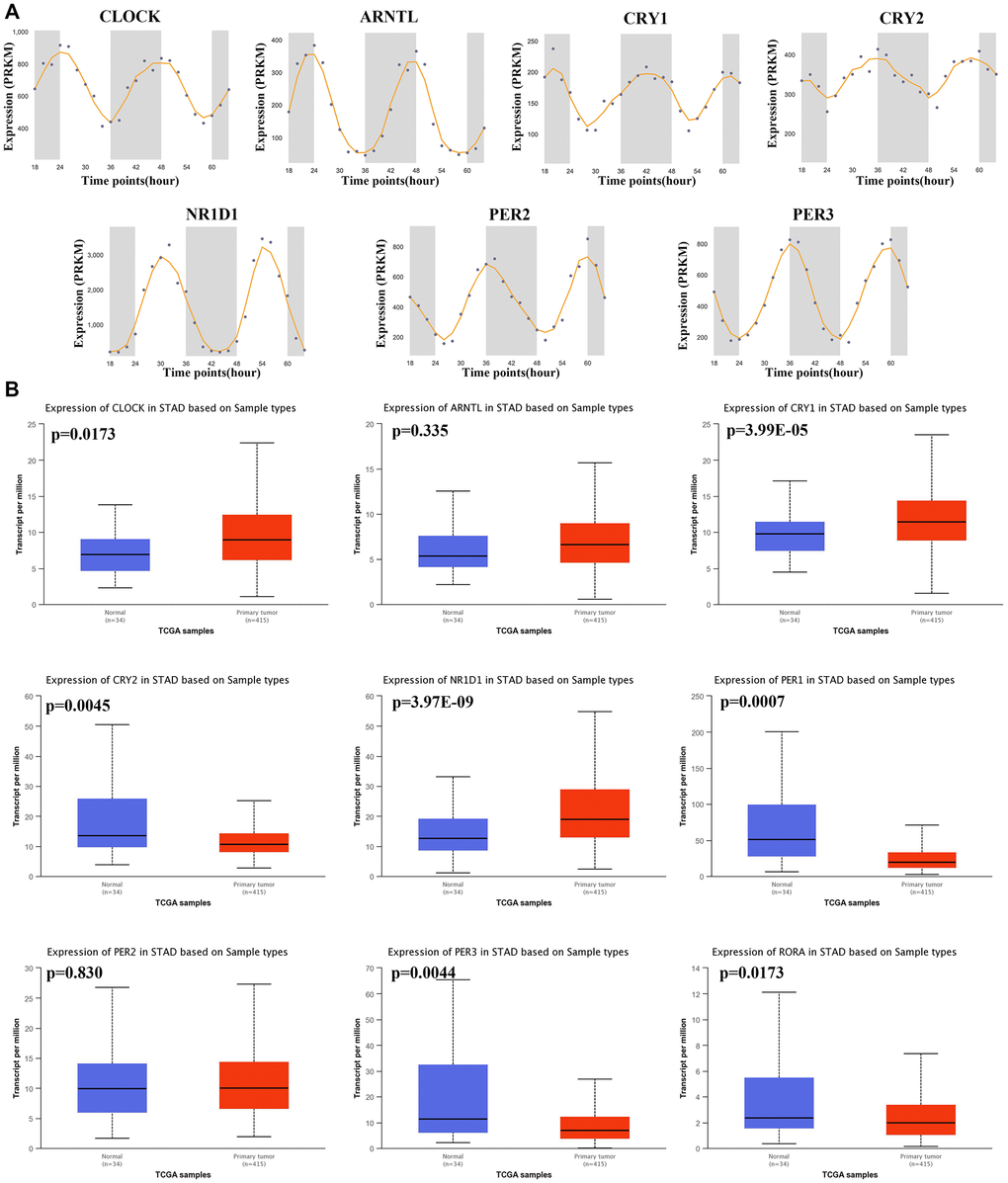 Overall, in this study, a comprehensive analysis of the prognostic value and immune-related function of core circadian clock genes in STAD was performed, and our results suggested that NR1D1 and PER1 serve as prognostic biomarkers and are associated with immune infiltration in STAD.