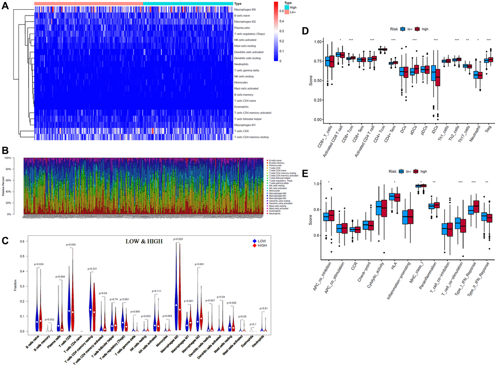 In summary, our results showed that the low-risk group had a greater immune ability to kill tumor cells, while the immune response of the high-risk group was more strongly suppressed.
