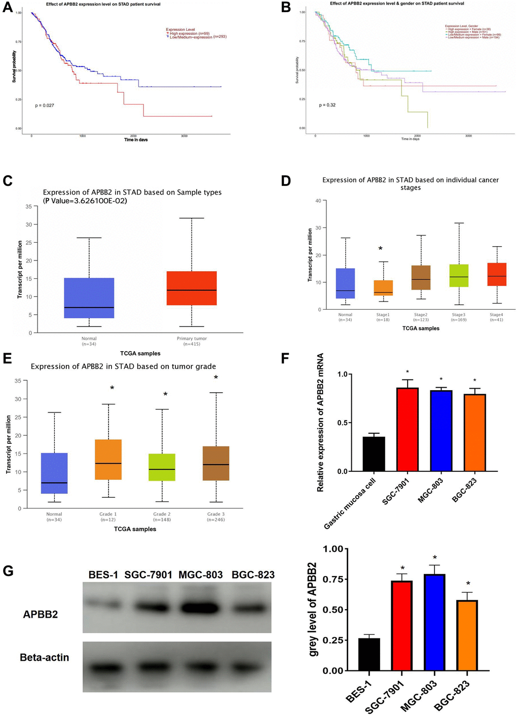 High APBB2 expression in GA patients is associated with a poor prognosis