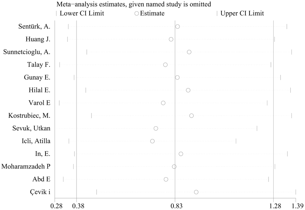 The sources of heterogeneity were analyzed with a meta-regression model and subgroup analysis by region, testing time, analyzer, smoking, diabetes mellitus, type of disease, and the score of NOS. Sensitivity analysis was applied to increase the credibility and robustness of the final results, mainly by deleting each of the included studies, one at a time, and then analyzing the pooling effect and heterogeneity of the remaining papers. Publication bias was evaluated by constructing a funnel plot, performing Egger’s test, and calculating Begg-Mazumdar Kendall’s tau value [20, 21]. All statistical tests were two-sided, and P <0.05 denoted significance, in addition to the heterogeneity test that was set at 0.1. All analyses mentioned above were performed in STATA statistical software, version 14.0.