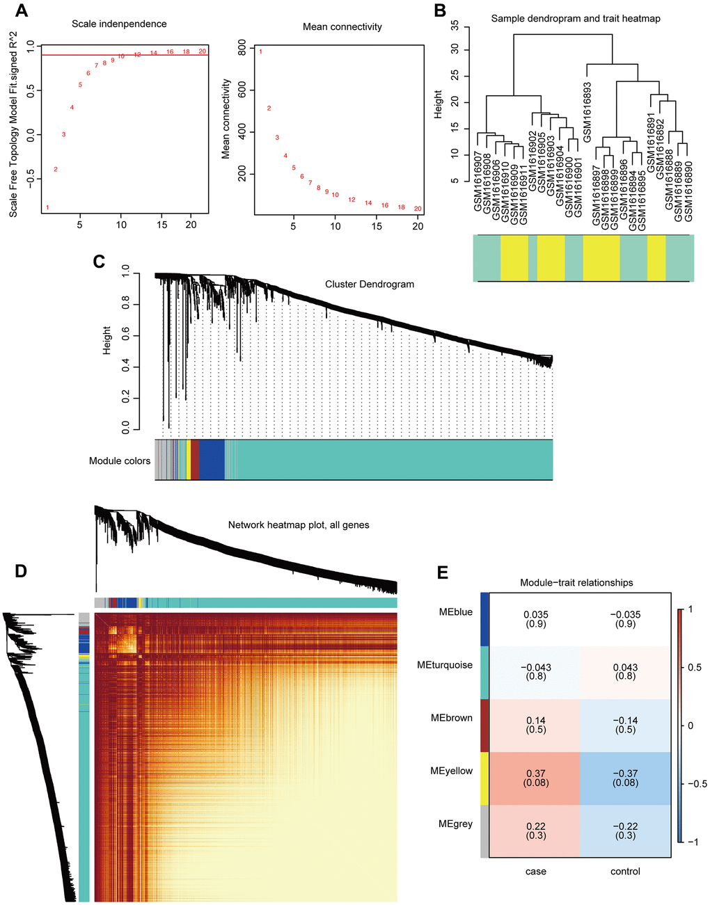 Co-expression analysis of all genes and lncRNAs associated with breast cancer bone metastasis was performed using the weighted correlation network analysis (WGCNA) R package. We used the WGCNA algorithm to mine the co-expressed gene modules, and then analyzed the associations between these modules and the sample phenotype. The identified breast cancer metastasis-related modules were displayed in the network using Cytoscape.