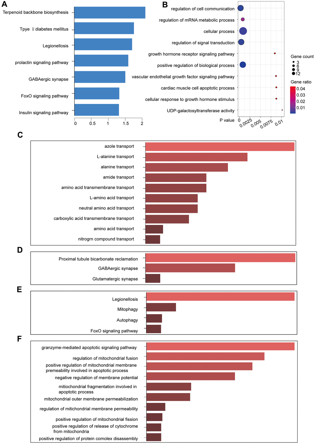 Enrichr was used to enrich the KEGG and GO functions of the five lncRNAs in the yellow module (p < 0.05). Some pathways that were enriched for the lncRNAs were related to amino acid transport (Figure 4C, 4D), including alanine transport (GO: 0015808, p = 0.00249) and amino acid transmembrane transport (GO: 0003333, p = 0.00747). We identified the GABAergic synapse (p = 0.02205) in the lncRNA-enriched KEGG pathway, which is closely related to breast cancer metastasis [14, 15]. Therefore, the yellow module was likely to be a pathogenic module.